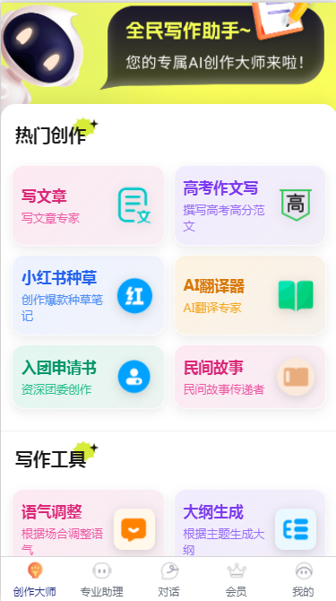 超千万写作者选择的专业写作工具,提供全方位的创作支持与灵感启发